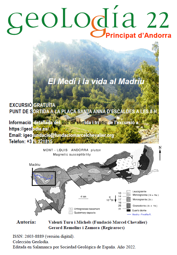 Aquest passat diumenge 8 de maig-22 i com cada any la Fundació Marcel Chevalier (FMC) ha organitzat el Geolodia Andorra-2022. El Geolodia és un conjunt d'excursions gratuïtes coordinades a tot Espanya per la SGE (Sociedad Geológica de España), guiades per geòlegs i obertes a tota mena de públic. Amb el lema "La Geologia davant de l'Emergència Climàtica", el seu objectiu principal és mostrar que la Geologia és una ciència atractiva i útil per a la nostra societat. Se celebra el mateix cap de setmana a tot l'estat espanyol i des de fa uns quants anys Andorra també hi participa.