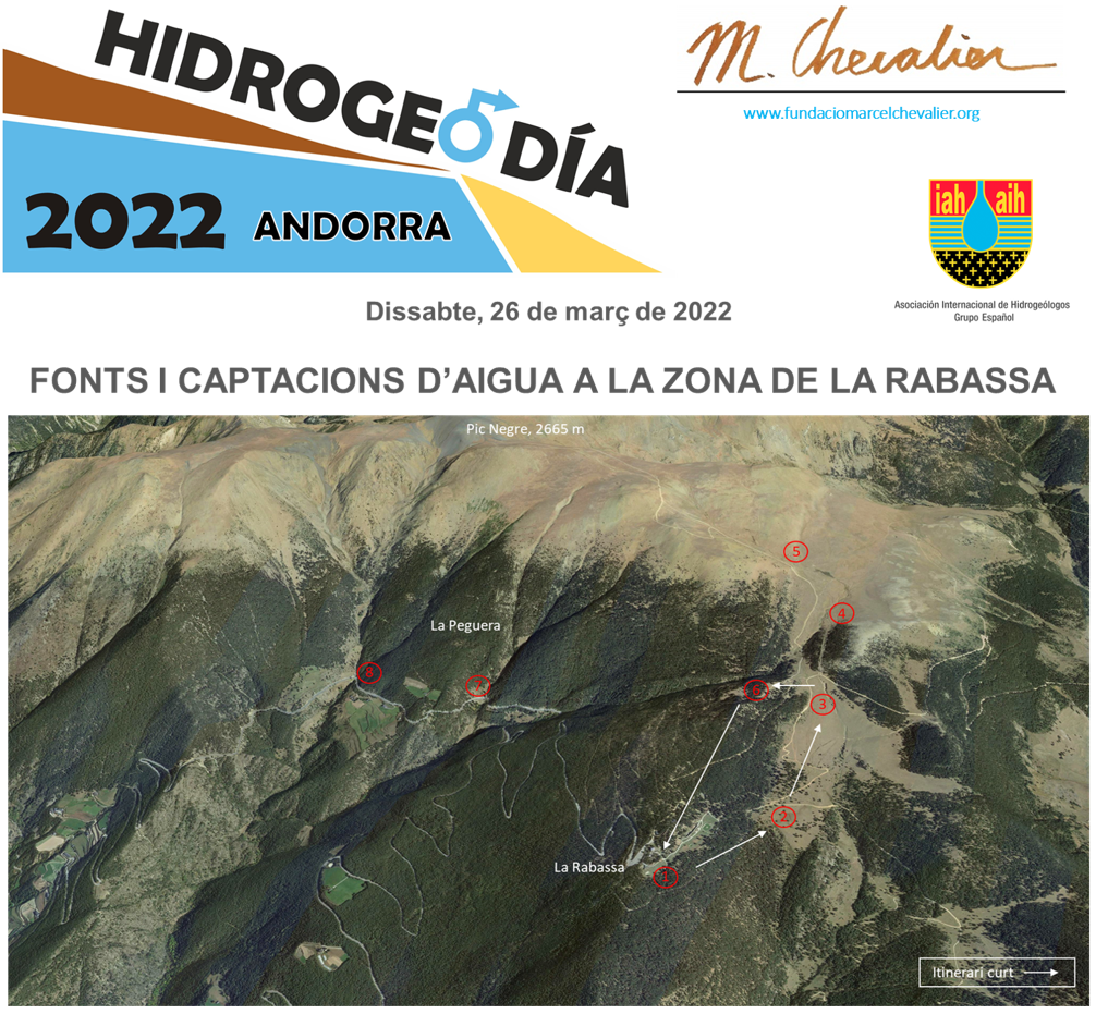 L'excursió que enguany organitza la Fundació Marcel Chevalier (FMC) com a activitat del dia Mundial de l'Aigua - Hidrogeodia a Andorra (aquest any dedicat a les aigües subterrànies) porta per títol FONTS I CAPTACIONS D'AIGUA A LA ZONA DE LA RABASSA (vegeu informació i la ruta prevista als documents adjunts).